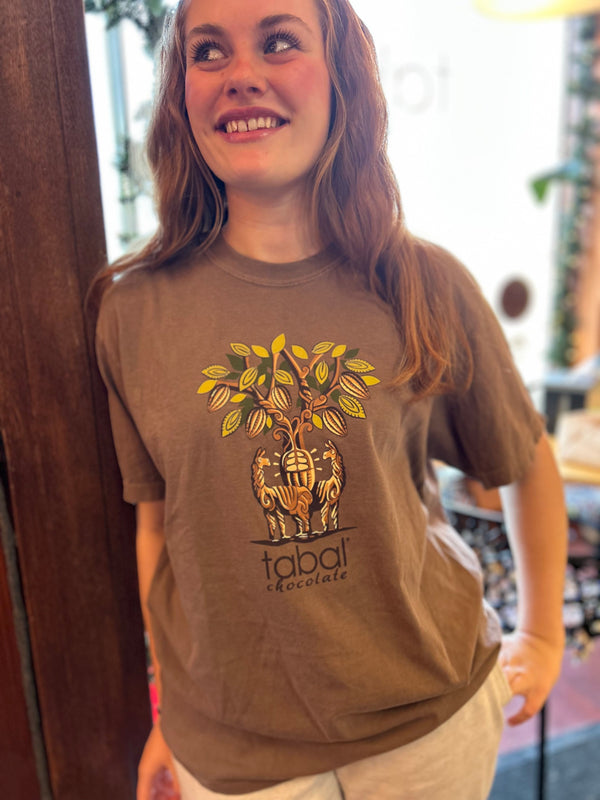 Grab your very own Tabal shirt and spread the word as you turn heads in style. For every tshirt purchased, a portion of proceeds will go to support farm growth with Miguel, our amazing cacao farmer from Colombia.
