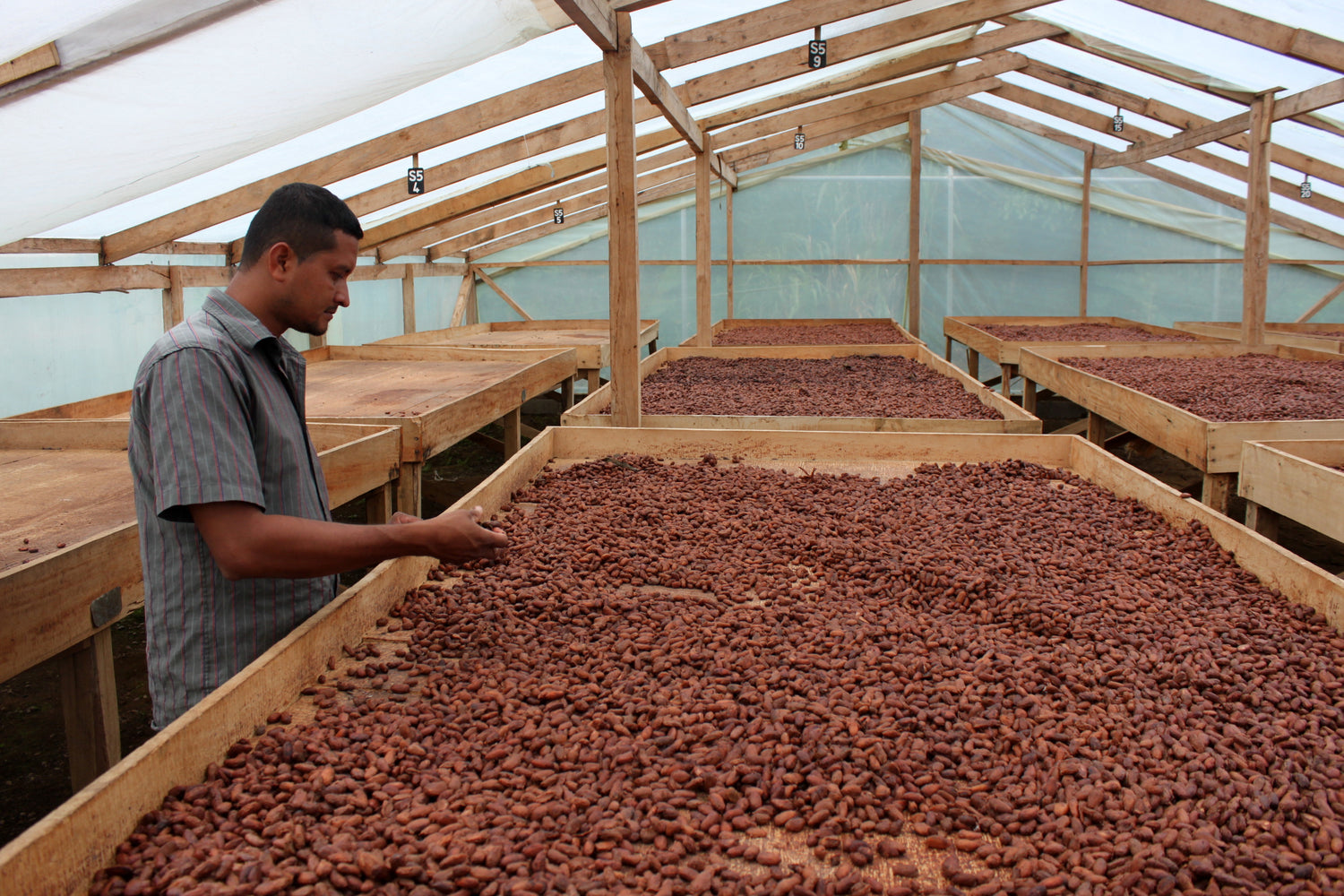 When the beans are finished fermenting they are removed from the fermentation boxes and the final drying process begins.